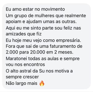 O Movimento Woman é uma comunidade de desenvolvimento e networking para mulheres que querem empreender, crescer e conquistar mais resultados na vida e nos negócios.