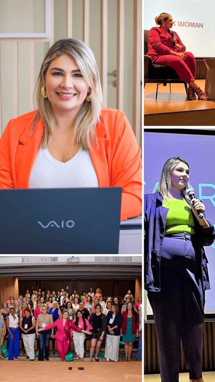 Então criei a há 6 anos o Movimento Woman, uma comunidade de conteúdo onde minha missão é ajudar o maior número de mulheres possível a montar seu império.